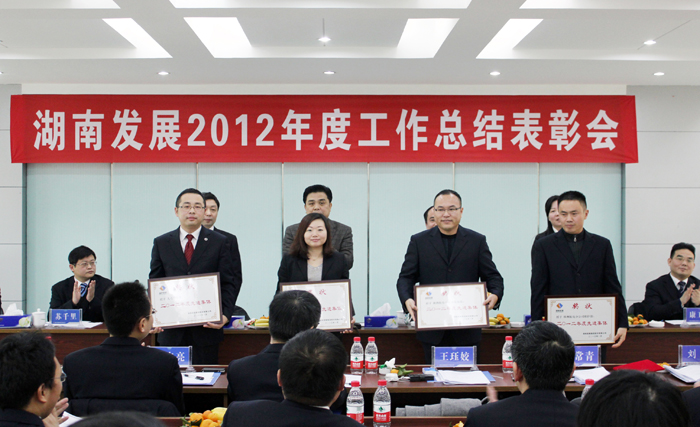 總裁劉健總結(jié)了2012年度公司工作完成情況、取得的經(jīng)驗(yàn)和存在的問(wèn)題,報(bào)告了2013年度主要工作思路。副總裁兼財(cái)務(wù)總監(jiān)張潔宣讀了《關(guān)于表彰2012年度先進(jìn)集體和優(yōu)秀個(gè)人的決定》,公司領(lǐng)導(dǎo)對(duì)獲獎(jiǎng)集體和個(gè)人進(jìn)行了頒獎(jiǎng)。